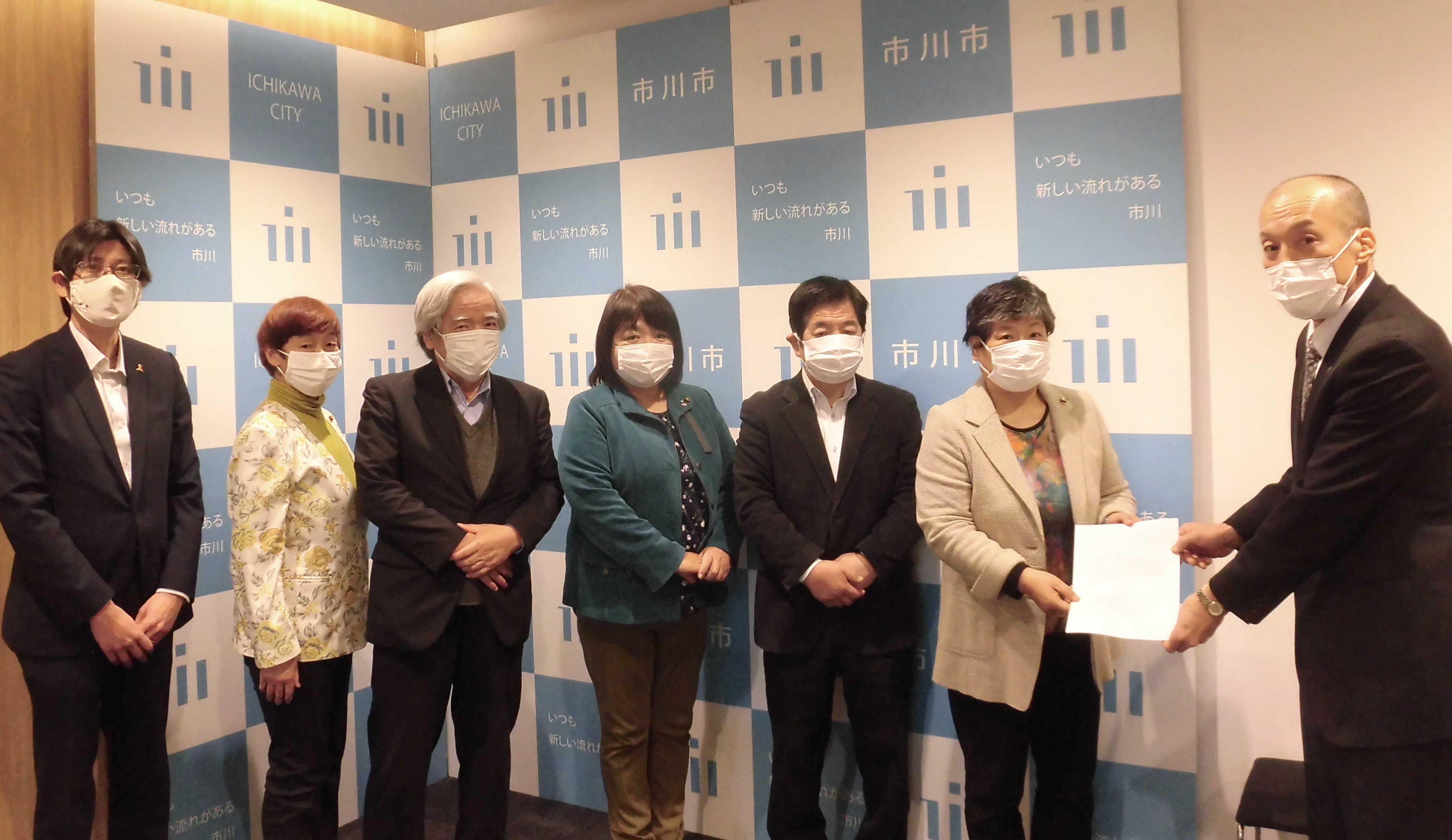 村越市長に対して「市川市の経済対策の充実を求める申し入れ」をしました。