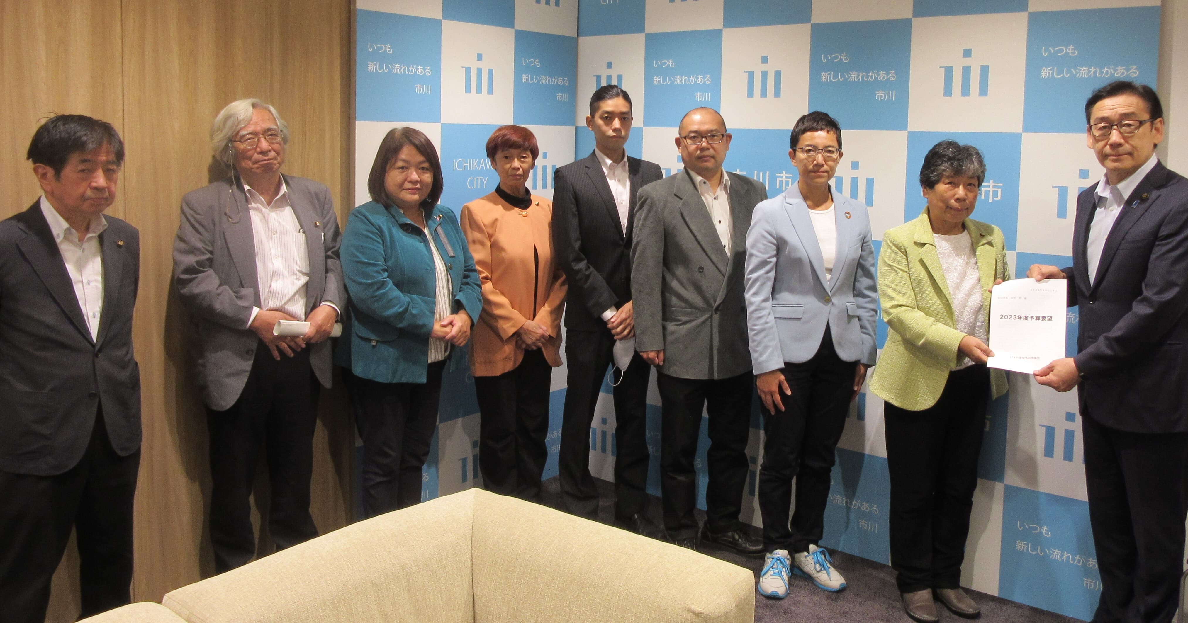 村越市長に対して「市川市の経済対策の充実を求める申し入れ」をしました。