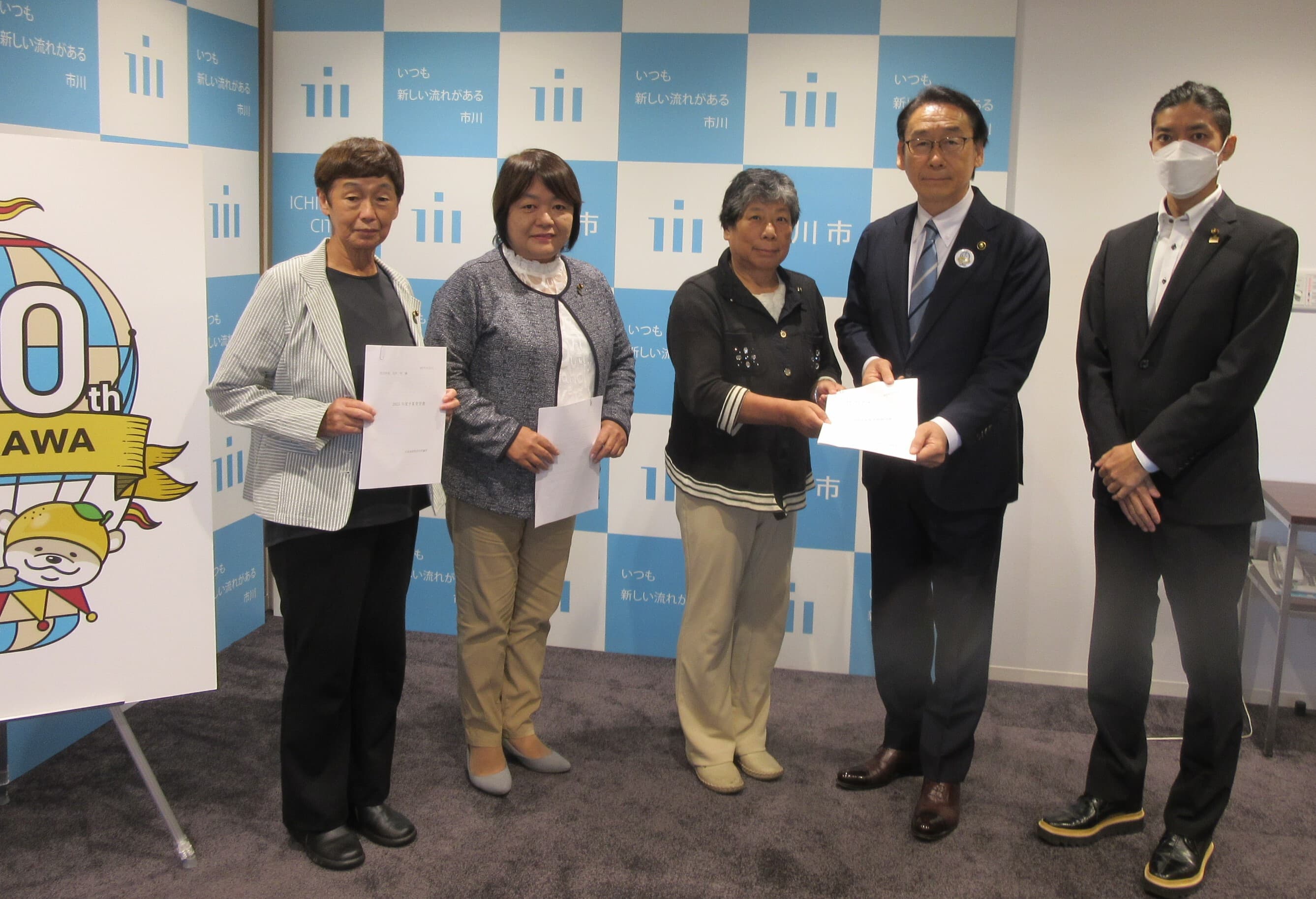 日本共産党市議団と市川浦安地区委員会は、村越祐民市長に対して、「本会議の質問に対しての市長発言への抗議文」を提出しました。