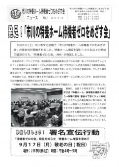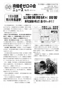市川市長選挙を前に、市川の特養ホーム待機者ゼロをめざす会では、立候補予定の大久保博氏(現市川市長)と田中長義氏(市川市政をかえる会)に「特養ホーム増設についての公開質問状」を出しました。